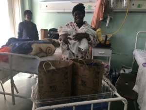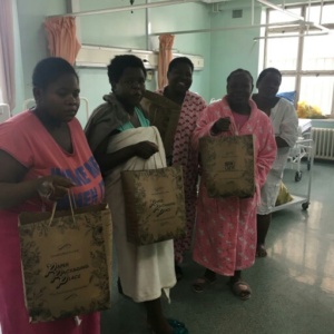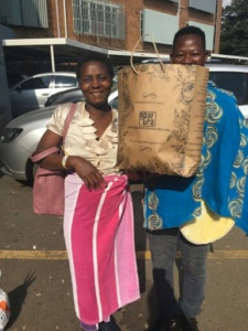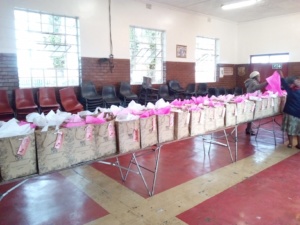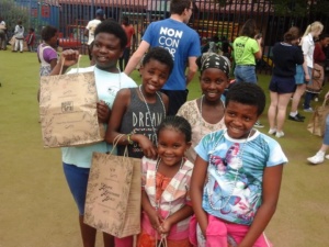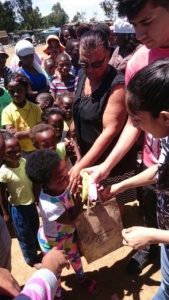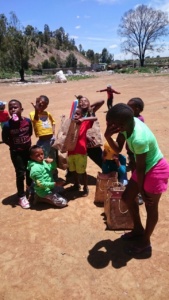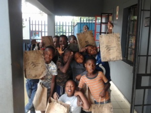 Children receiving gifts in our bags