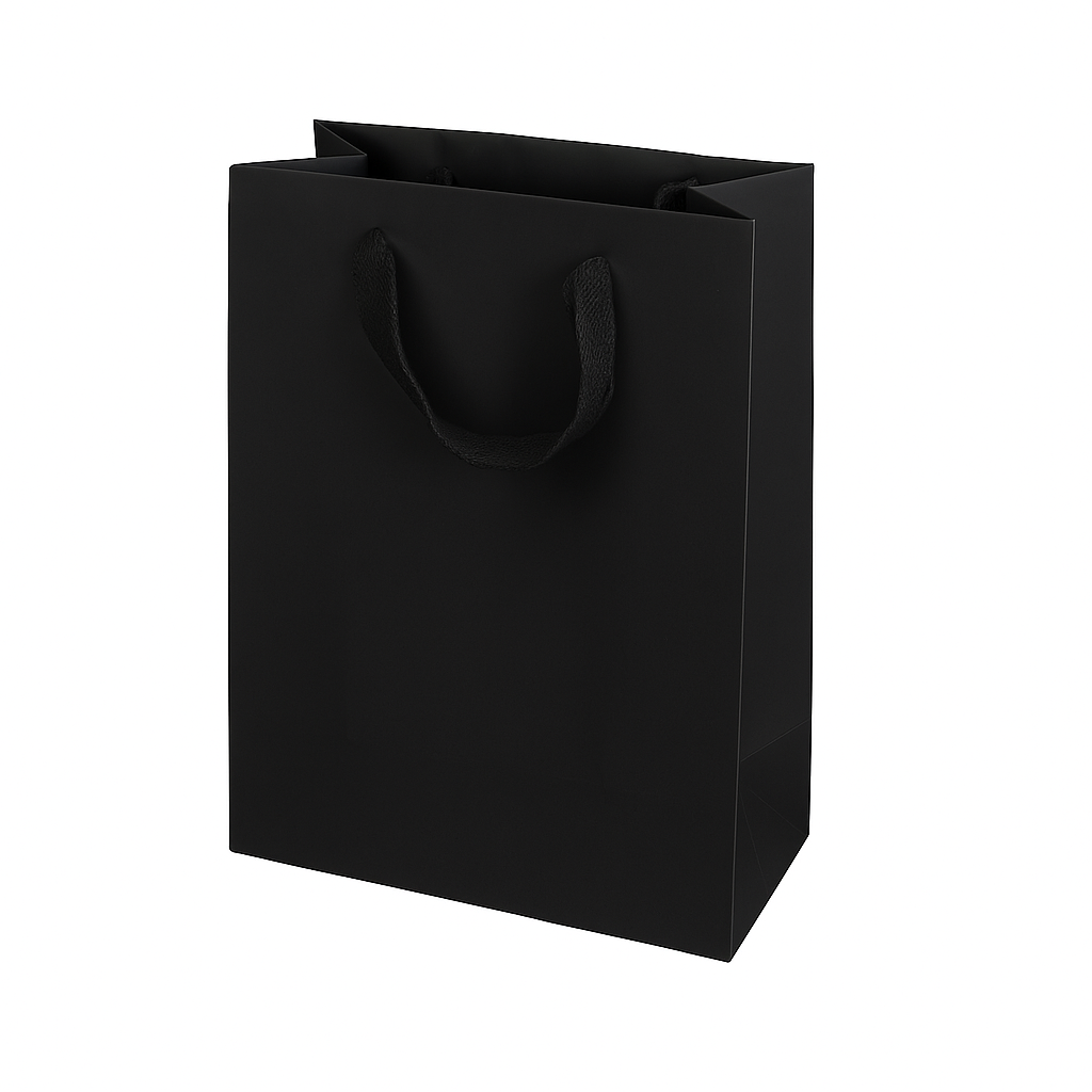 260gsm Black Paper Bag with ribbon handles